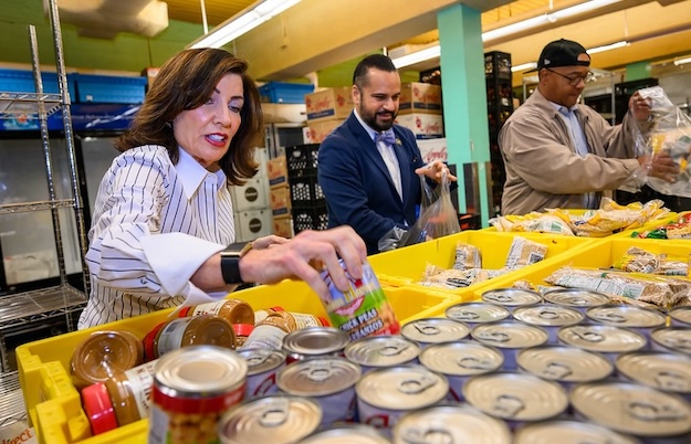 Photo by Susan Watts/Office of Governor Kathy Hochul: Gov. Kathy Hochul visits Common Pantry in Harlem in anticipation of the looming cut-off of SNAP benefits.