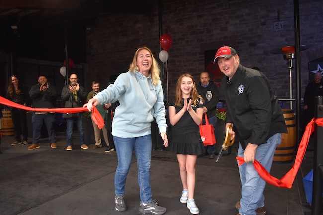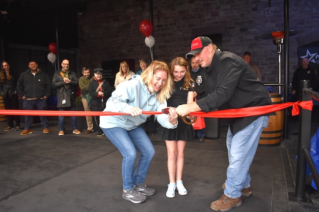 Shawn Malark, his wife Kelly and their daughter Montana cut the ribbon outside North Star Ammo & Defense this morning during a ribbon-cutting celebration.