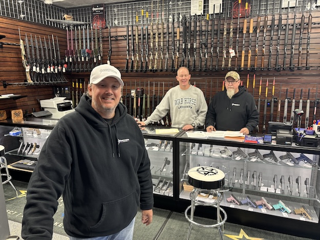 Photos by Tom Rivers: Shawn Malark, owner of North Star Ammo & Defense, is shown inside the business with two of the employees, Corey Black and Eric Harling, who are both recently retired after careers as investigators with the Orleans County Major Crime Felony Task Force.