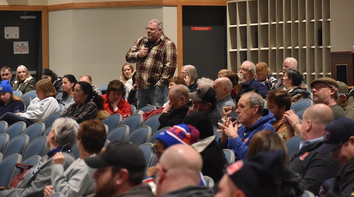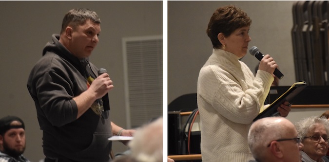 Village resident Brian Wiesinger speaks during Thursday’s board meeting. About 150 people attended the meeting that stretched more than four hours, starting at 6 p.m. and ending at 10:20. Wiesinger said the village should look at a more affordable option with a ladder truck.