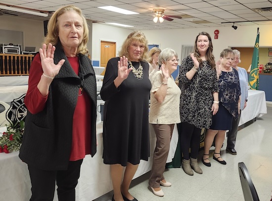 Members of the Shelby Volunteer Fire Company’s Ladies Auxiliary take the oath of office that was administered by County Clerk Nadine Hanlon.