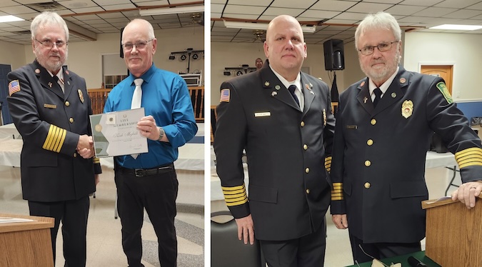 Fire company officers installed are president, Kirk Myhill; vice president, Howard Watts; treasurer, Tyler Root; assistant treasurer, Michael Saladeen; secretary, Kali Sturtevant; sergeant-at-arms, Dale Watts; chaplain, Karl Haist Jr.; assistant chaplain, Phil Keppler; and steward, Gary Watts.