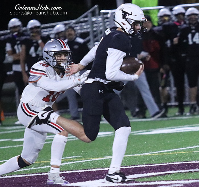 However, Barker/Roy-Hart answered right back as quarterback Tysen McCaa broke loose for back-to-back long touchdown runs of 63 and 66 yards to pull the Bulls to within four at 16-12.