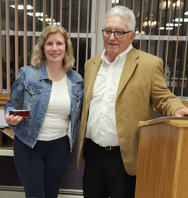 The first presentation was the President’s Award, given by Mike Fuller to Karen Bracey.