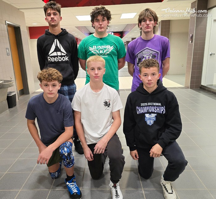 Photo by Cheryl Wertman – The Holley-Kendall wrestling squad’s veteran group includes, in front, Carson Cady, Isaac Bartlett and Jayden Rivera. In back are Parker Denning, Immanuel Cornell and Brenden Eichas.