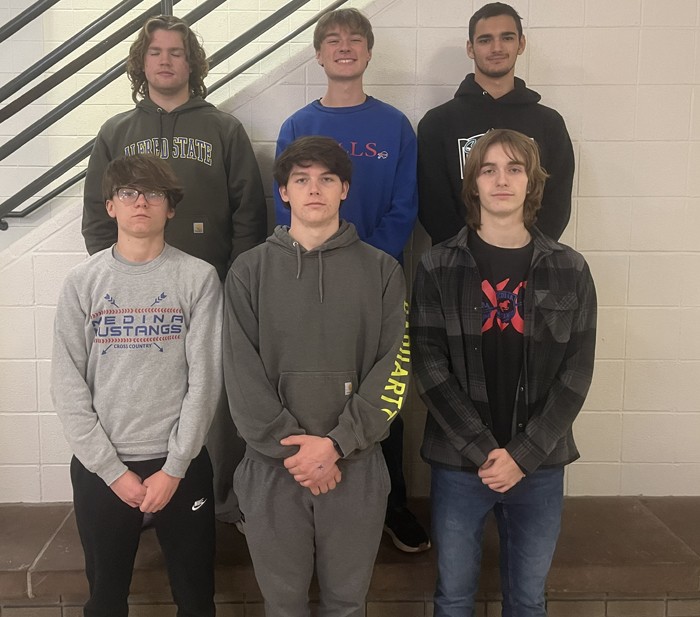 BOYS CROSS-COUNTRY: Bottom Row – Cole Hughes, Brandon Brueckner and Hunter Walczak. Top Row – Brennan Allen, Jonathan Dix and Roman Maksimchuk.