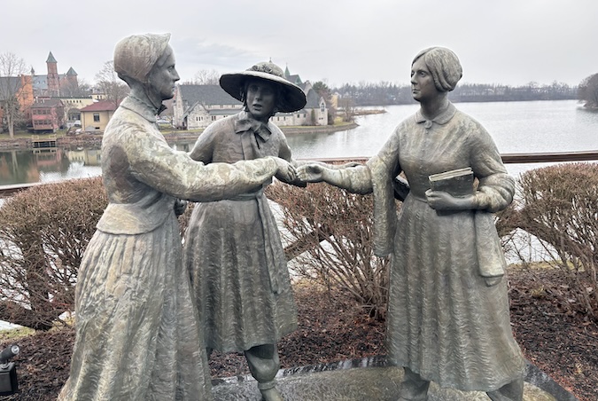Photo by Tom Rivers: The state’s commemoration of the 250th anniversary of the American Revolution isn’t just based on the country’s founding in 1776. NYS wants to highlight other significant movements, including the push for women’s rights. This photo shows three statues in Seneca Falls of prominent women’s suffrage leaders.