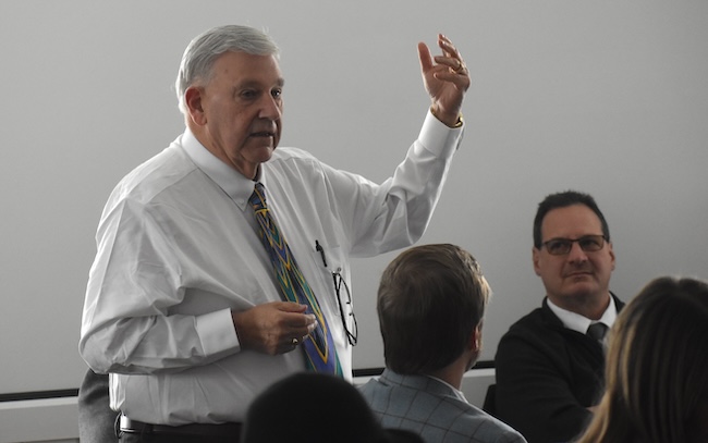 Arthur Barnes of Shelby was among the attendees at Monday’s meeting. He wore a “Stop STAMP” button. Barnes would have preferred to hear a presentation from the developer to the group, but instead Stream had people meet one on one or in small groups. Barnes said the presentation was “too slick” and didn’t consider the impacts of the project on the community.