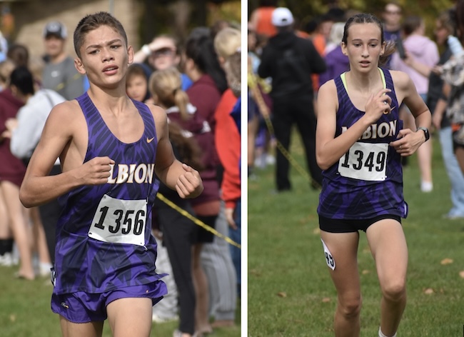 Albion’s top finishers are both freshmen. Stryker Sanders was 8th overall in the boys race in a time of 18:58, while Adele Mathes was 12th overall in the girls race in 23:06. Both are on second team, All League.