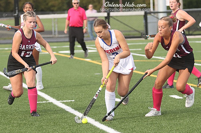 Scoring in every quarter, Barker downed Medina 7-2 this morning in the host Lady Bulldogs Niagara-Orleans League field hockey season finale.
