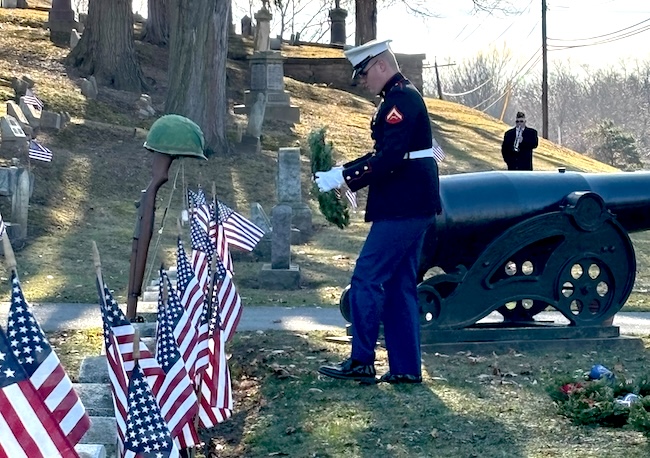 Volunteers will then place 300 wreaths at the graves of veterans. The effort is organized by the Holley Rotary Club with donations from the community and the Rotary Club. The wreaths are up from 250 last year, and 200 in the first year – 2023.
