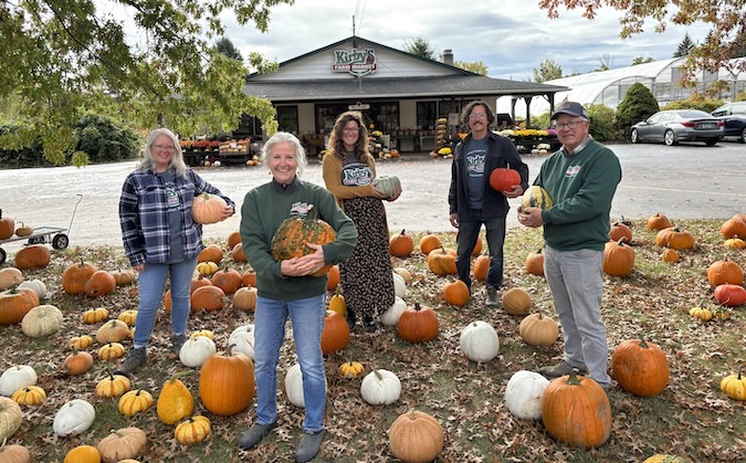 Photos by Tom Rivers: Linda and Tim Kirby, front, have been part of Kirby’s Farm Market for more than 50 years. The business was started in 1970 by Tim’s dad George and George’s brother Bob. In back are their daughter, Stacey Kirby Steward; daughter-in-law, Mandy Kirby; and son, Chad Kirby. They are shown in front of the market with some of their pumpkins.