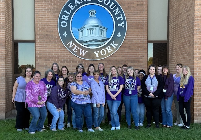 ALBION – Employees at the Orleans County Department of Social Services participated in “Purple Thursday” last week in recognition of survivors of Domestic Violence. October is recognized as Domestic Violence Awareness Month, bringing awareness to domestic violence within our community.