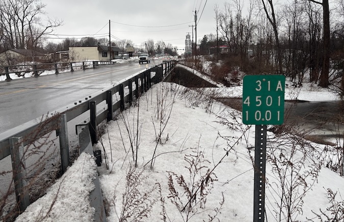 Photos by Tom Rivers: A pedestrian bridge will soon be built across the Oak Orchard Creek along Maple Ridge Road (Route 31A) in Medina. This area will get about 2,000 feet of new sidewalks.