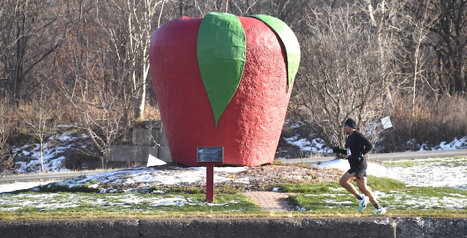 Jose Miguel Silva Ortiz of Medina won the race in a time of 17:53, followed by Alden Cayea of Medina in a time of 18:02. The first place finisher is shown by the Big Apple along the Erie Canal.