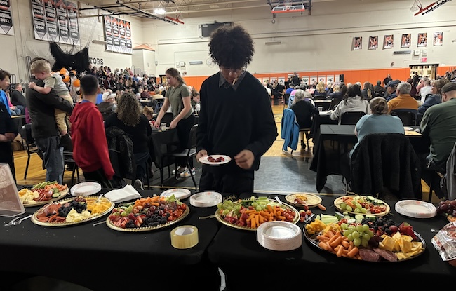The music boosters groups from the five districts arranged for the refreshments. There were 20 tables on the floor of the gym and the bleachers were mostly full.