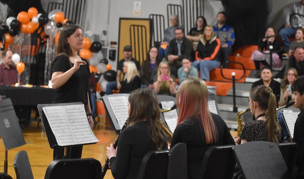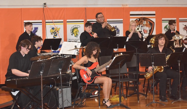 The Holley Junior/Senior High Jazz Band performed two songs at the concert. Director Zach Busch is in back on the trumpet.