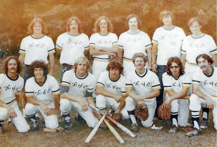The 1973 KofC team included, in front, Bill Mirand, Bruce Foley, JC Hobbs, Louie Foreman, Danny Weingarten, Hector Colon and Doc Cotter. In back are Ken Snyder, Jake Hobbs, Jim Kingsley, Eddie Caleb, Greg Lewis and Mike Crowley.