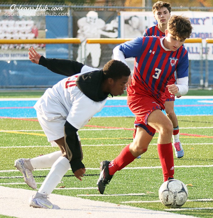 Medina’s Owen Sargent goes after the ball ahead of Olmsted’s Joshua Wa Salche.