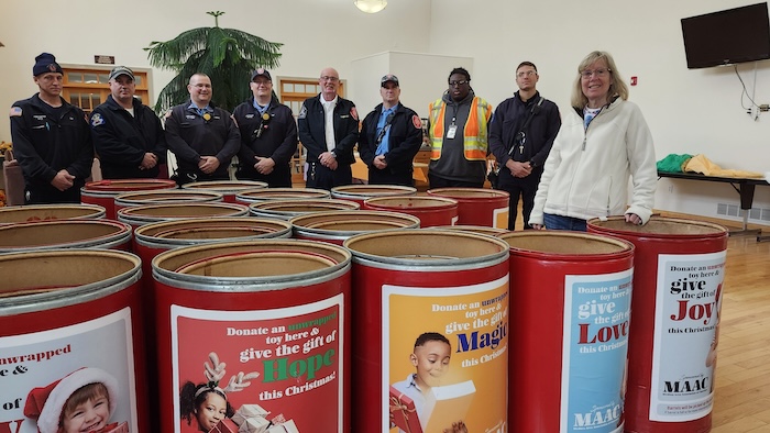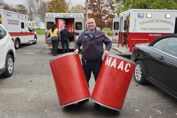MEDINA – When they are not busy putting out a fire or responding to an emergency call, Medina firefighters may be found supporting their community in other ways, such as delivering barrels throughout town for MAAC’s annual Christmas Present Program (otherwise known as the Red Barrel Program).