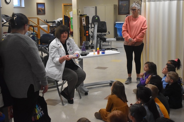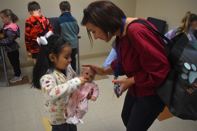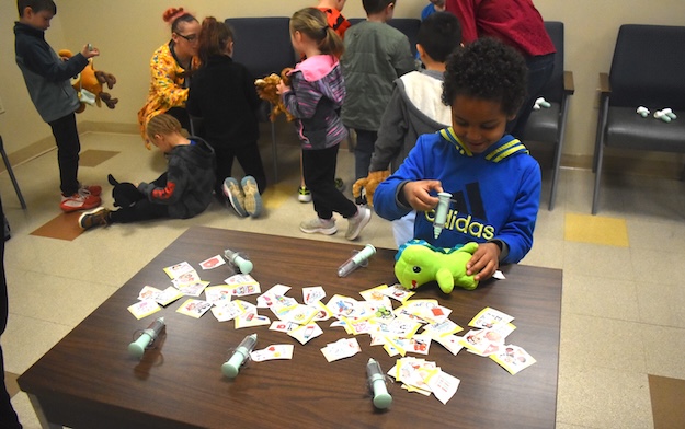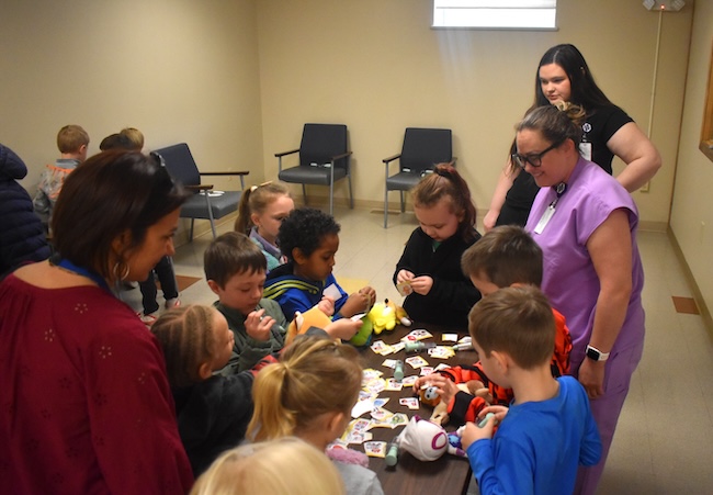 MEDINA – Stephanie Kruzynski, a Medina kindergarten teacher, brought her class to Medina Memorial Hospital today for the Teddy Bear Clinic where students bring in stuffed animals or dolls and go through different stations at the hospital.