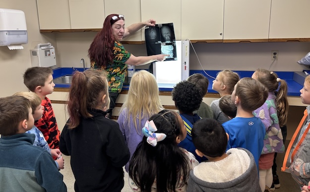 Erica Chutko, manager of the X-Ray Department, shows students X-rays. She explained an X-Ray is a way to take a picture of the inside of a body. Getting an X-Ray doesn’t hurt, she told the students.