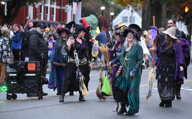 In front, Khloe Mank, 9, is Emily Binx. In back from left are Leah Printup as Thackery Binx (the iconic cat), Jennifer Printup as Winifred Sanderson, Amanda Mank as Mary Sanderson, and Vanessa Lhommedieu as Sarah Sanderson.