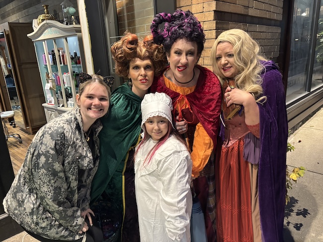 Jana Howard, back left, and Tina Oosterling, co-owner of A Kut Above, gave out lots of candy. They look forward to Beggar’s Nite every year.