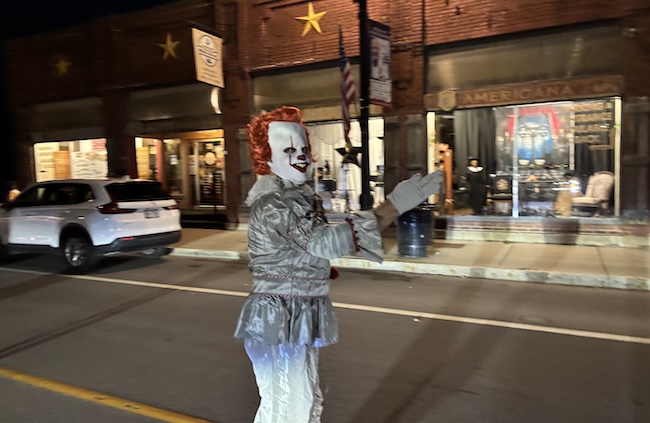 Randy Heslor, production supervisor for The Print Shop, dressed as the IT character and served as a crossing guard during the busy event.
