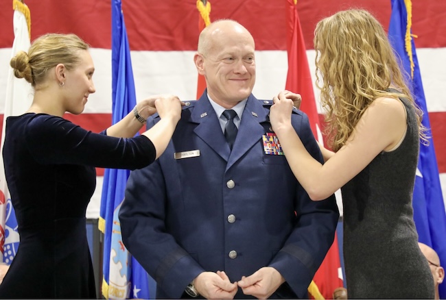 Air National Guard Major General Gary Charlton II has new two-star general stars pinned on by his daughters during promotion and change of command ceremonies held on Jan. 9.