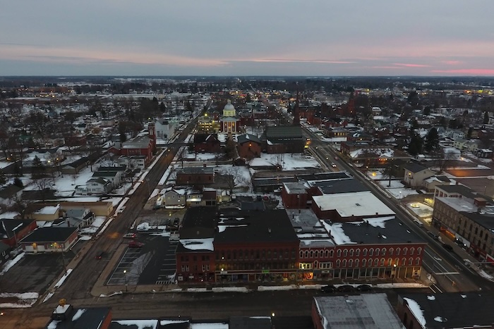 File photo by Eliott Neidert: This photo from February 2017 was taken by a drone and shows part of downtown Albion with the Orleans County Courthouse in the background.