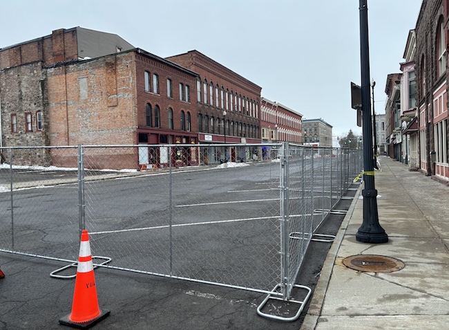 The fenced off area also will include the village municipal parking lot at the corner of East Bank and Platt Street. That lot is next to Corso’s building at 28 East Bank.