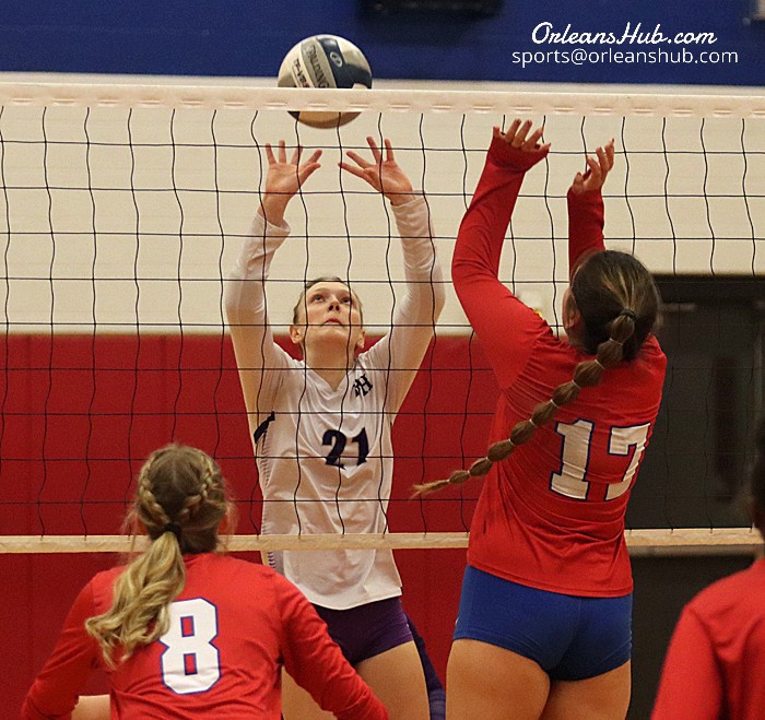 Jillian LeBaron had 2 kills and 38 digs, Melia Prince 4 blocks and 2 kills, Anna Grillo 2 kills and 2 aces, Carley Smith 3 kills and Madison Muckle 19 digs for Albion.