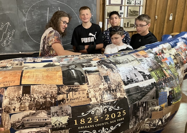 Ierlan also showed the students the progress on decorating a fiberglass ox with historic photos from Clarendon. This ox is part of a celebration of Orleans County’s 200th anniversary this year. Ierlan is a member of the Bicentennial Committee.