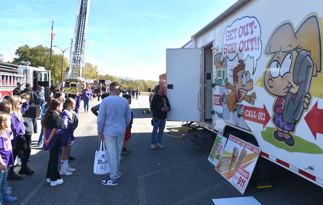 Students make their way through a smoke simulator inside a fire safety training trailer was outside the school today. That trailer, owned by the Orleans County’s Emergency Management Office, has a fog machine to simulate smoky rooms.