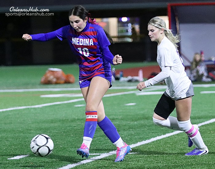 Albion downed Medina 8-0 in a Niagara-Orleans League girls soccer game at Vets Park this evening.