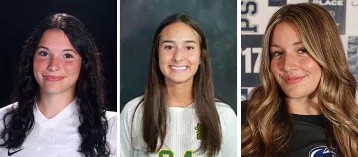 Contributed Photos – Among the local student/athletes playing collegiate soccer this fall is this trio of, from left, Kara Choate a Roy-Hart graduate and a senior midfielder at Roberts Wesleyan University; Megan Gates, a Kendall grad and a sophomore midfielder at SUNY Brockport and Sydney Mulka, an Albion grad and a senior goalie at Penn State Harrisburg. Choate, who is an Education major has four goals on the season and a four year career total of 12 goals and 9 assists.