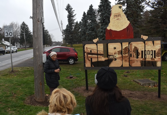 ALBION – The Village of Albion unveiled a new sign today on the eastern side of the village on Route 31 that highlights the community’s ties to Santa. The sign also spells out “ALBION” and local landmarks are painted within the letters.