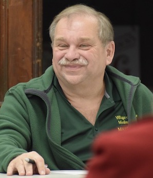 Photo by Tom Rivers: Mike Sidari, shown during a meeting in October 2023 when he was Medina’s mayor, has retired as a callman firefighter for Medina Fire Department.