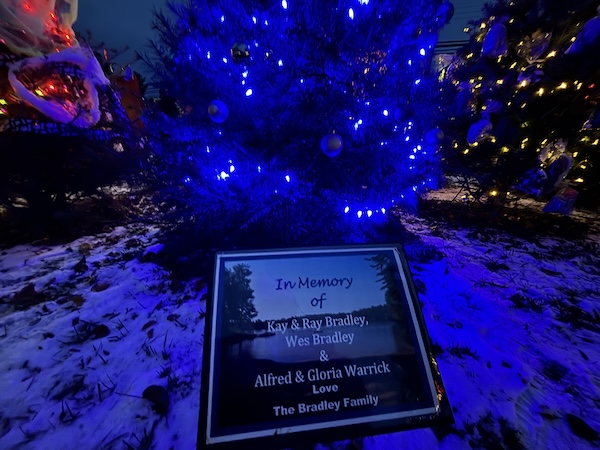 One of the trees is decorated by the Bradley family for family members including Wes Bradley, who was a founding member of Christmas in Lyndonville Committee. For the first 12 years of the celebration, Bradley served as the emcee when Santa arrived by carriage and led the countdown to Santa flipping the switch to light up the trees.