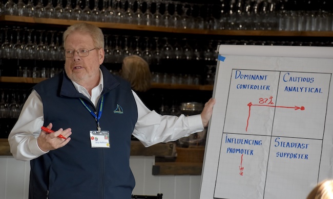 Each of the class members did a DISC profile to see where they landed. Helfrich discussed how the different types of people can often clash, and often help each other when they appreciate their different skill sets and styles.
