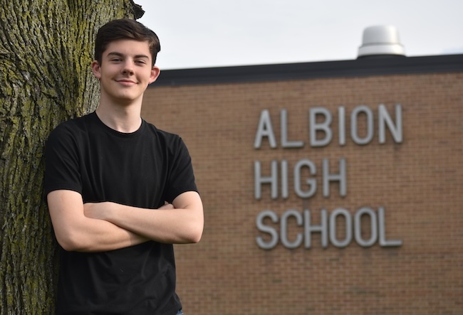 Photos by Tom Rivers: Bradley Pierce will graduate from Albion High School on June 26, a year ahead of schedule. He will receive his degree from Genesee Community College on May 16.
