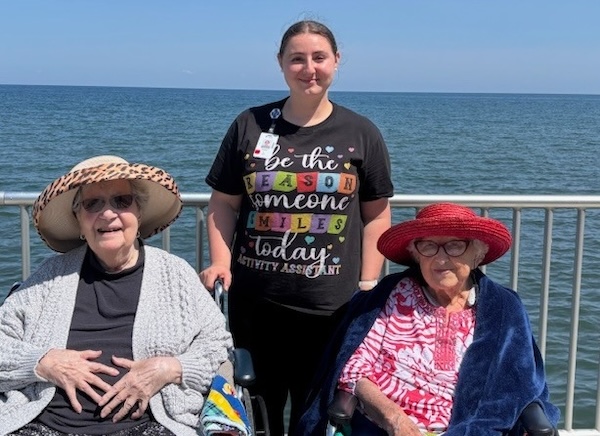 Anna Lewis, activities leader at OCH, also recognized during National Activity Professionals Awareness Week. She is shown here with two North Wing residents on a field trip to the lake.