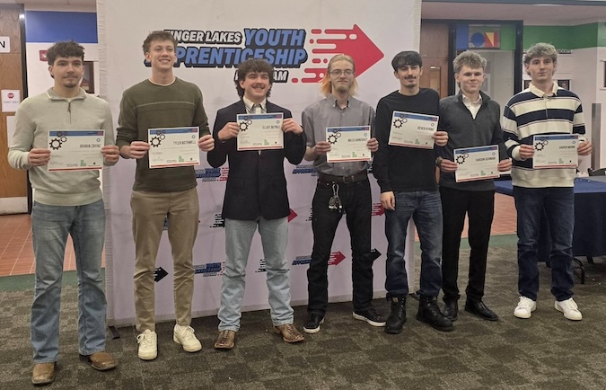 The Advanced Manufacturing and Engineering students in teacher Bill Rakonczay’s program had their annual Finger Lakes Youth Apprenticeship Program signing event. The Finger Lakes Youth Apprenticeship Program bridges the gap between youth and manufacturing careers through apprenticeships, job shadows and paid co-ops. Students gain skills and experience while connecting to future career opportunities.