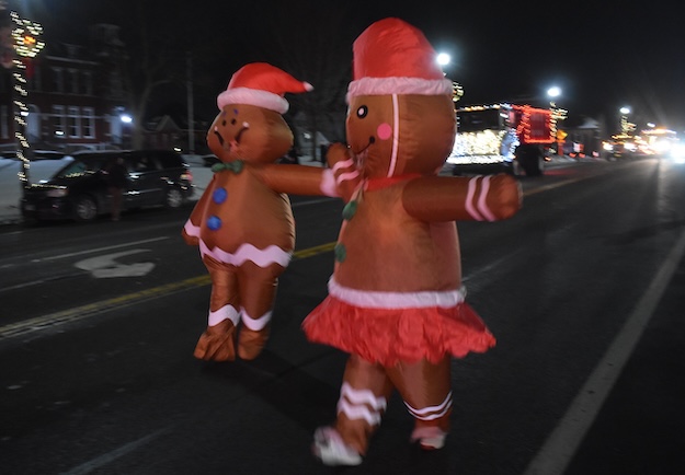 Photo by Tom Rivers: These Christmas Gingerbread inflatables were part of the Albion FFA float during the Charles Howard Hometown Parade on Saturday in Albion.