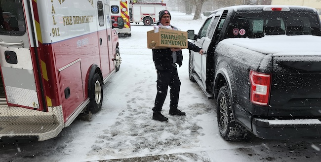 Addressing the firefighters, Tuohey-Sipple said, “We couldn’t do this program without you. You distribute the barrels, you pick them up and bring them back in, and then you deliver the boxes.”