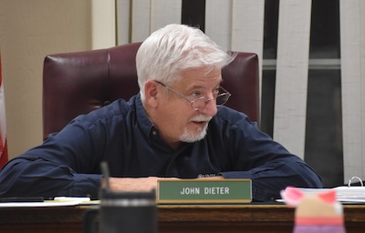 Photo by Tom Rivers: Mike Sidari, shown during a meeting in October 2023 when he was Medina’s mayor, has retired as a callman firefighter for Medina Fire Department.
