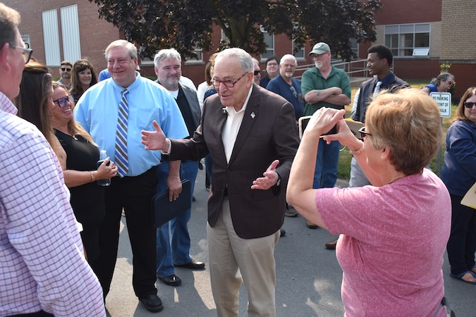 Photos by Tom Rivers: U.S. Sen. Charles Schumer is shown on Aug. 5 outside Brunner in Medina when he met with local officials to show his support for the Job Corps program. Job Corps has a site in Medina. The program was thrown into turmoil when the federal Department of Labor held up background checks on students and the DOL threatened to shut down 99 of the centers.