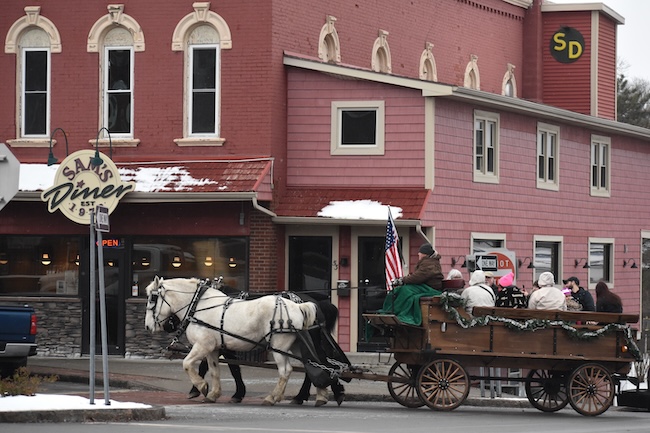 Hartland Carriage takes a group past Sam’s Diner in the Public Square.
