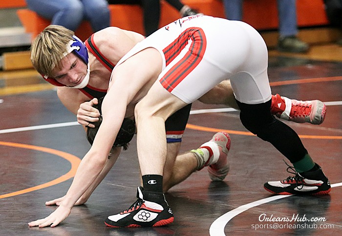 Jeremy Lutes won at 103 and Brenden Eichas at 138 for Holley-Kendall. Lutes pinned Nathan Dollinger (McQuaid) in 3:34 in his title bout while Eichas went 3-0 in round robin competition at 138.